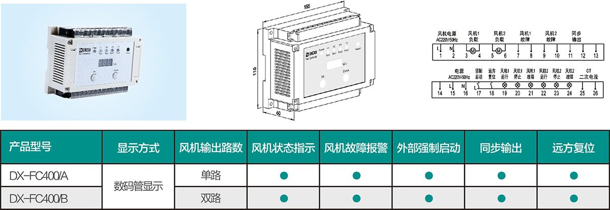 強制啟動:可通過外部輸出信號強制啟動風機。