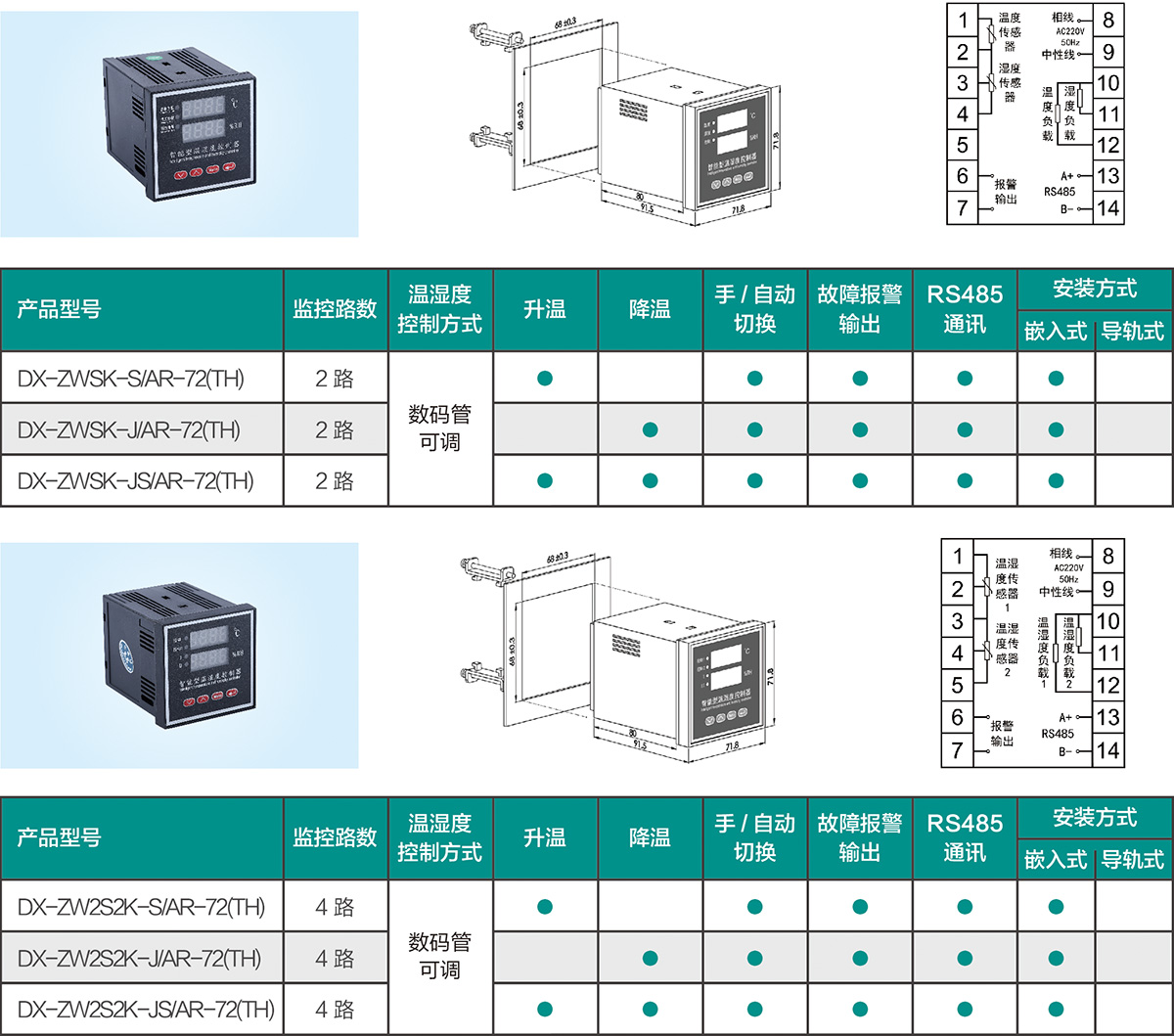 智能型溫濕度控制器廣泛應用于高低壓電氣設備的控制柜(箱)內的環境進行自動監控,使控制柜(箱)內的溫度和濕度始終保持在設定的范圍內,能有效地防止零部件的生銹和電器元件銹蝕、短路等故障,保障電氣設備的安全正常運行。